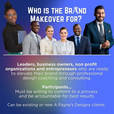 Leaders, business owners, non-profit organizations and entrepreneurs who are ready to elevate their brand through professional design coaching and consulting.